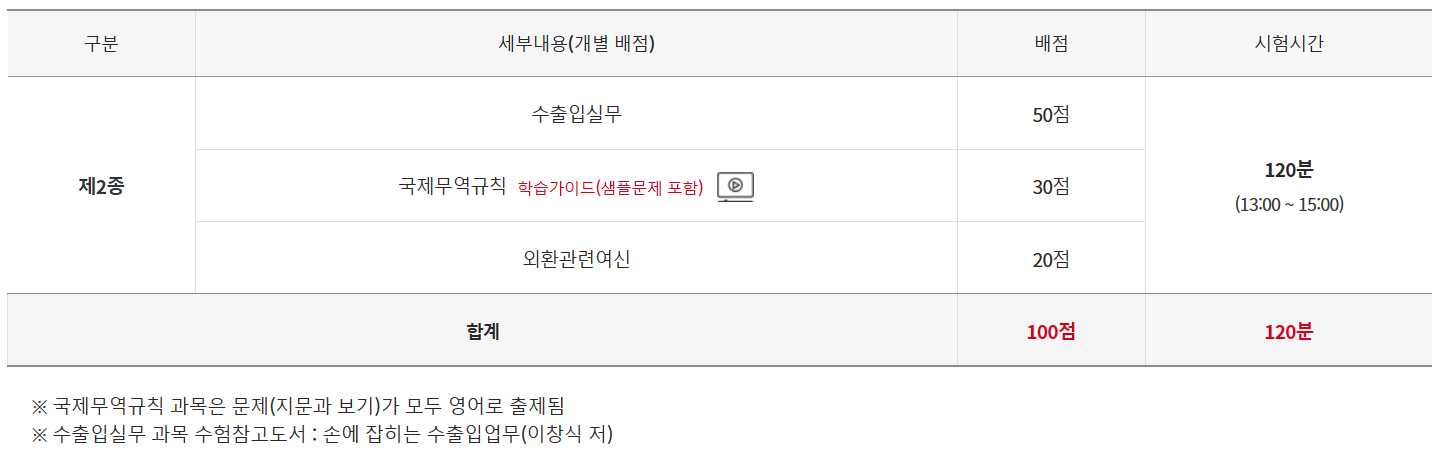 세부과목 : 수출입실무, 국제무역규칙, 외환관련여신